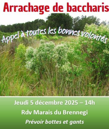 Accueil Évènements Campagne d’arrachage de Baccharis Campagne d’arrachage de Baccharis Date(s) Le 04/12/25 Horaires 14:00 Lieu Marais du Brennegi Accès Entrée gratuite Tarif de l'évènement Entrée gratuite