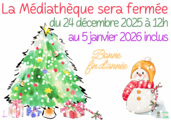 La médiathèque sera fermée du 24 décembre au 5 janvier inclus.